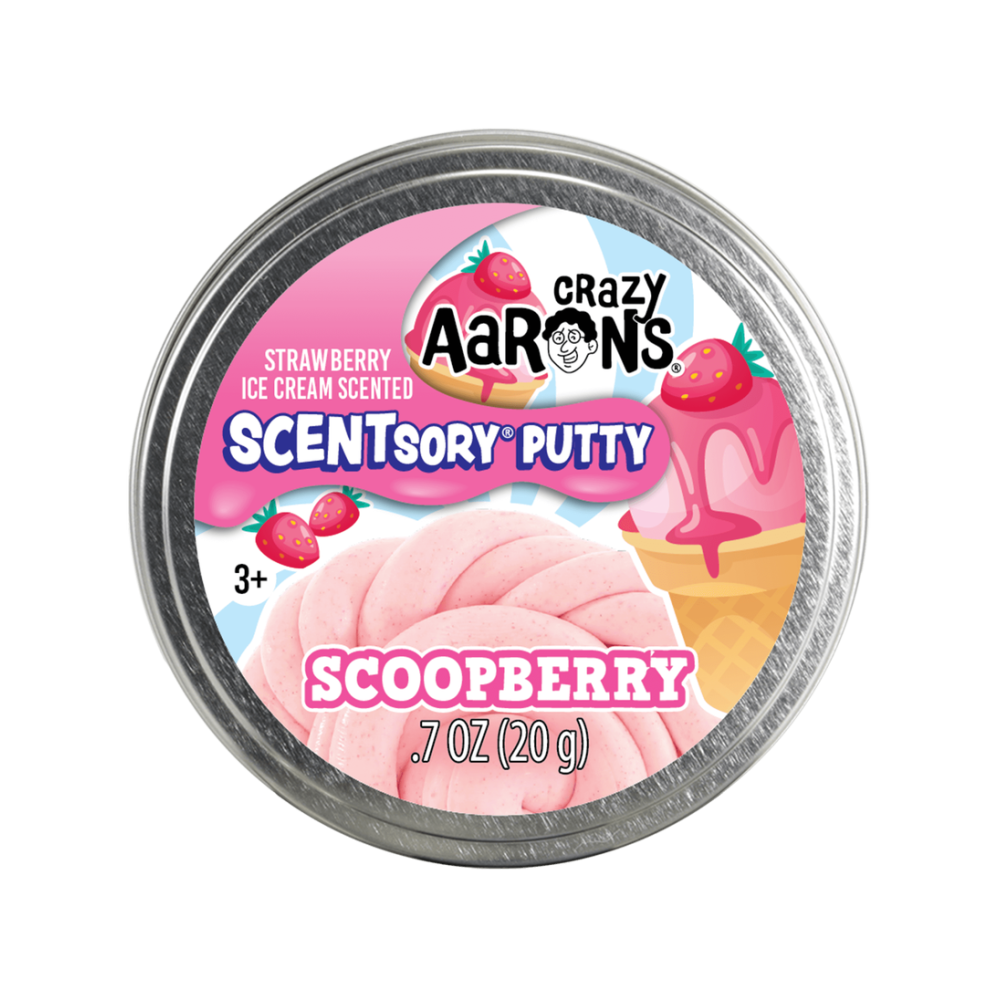 Treat yourself to something sweet! Scented with ripe strawberry and creamy vanilla, Scoopberry putty is a cool way to play. It looks just like a spoonful of strawberry ice cream in your hand.