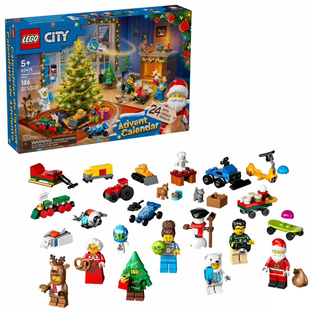 Start the holiday countdown with the LEGO® City Advent Calendar 2025! This year’s calendar is bursting with festive fun, including characters dressed in polar bear, reindeer and holiday tree costumes, plus accessories and toy mini builds. Fold out the playmat to reveal a Christmas party scene – the perfect backdrop for seasonal stories and imaginative adventures.