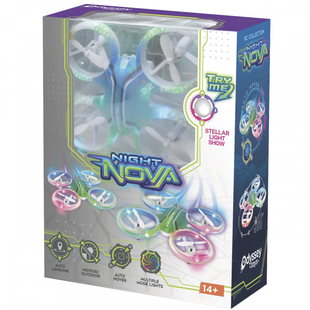 You’ll be blown away at the variety of tricks the Night Nova is able to execute. Looking to climb high and brighten the dark skies with the Night Nova? Gently push the lever on the transmitter and watch the drone ascend to incredible heights. Cycle through different bright LED modes for an impressive night flight.