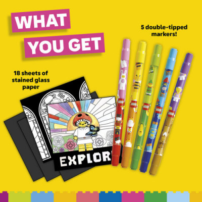 Create dazzling LEGO art that turns an ordinary window into a stained glass masterpiece! With 5 double-tipped markers (10 colors in all), this travel-friendly book has everything you need to color on the go. Hang your artwork up in any bright window and watch the sun shine through! You'll find some of your favorite LEGO minifigures throughout, with plenty of humor and creative inspiration.