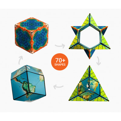 Unlock the mystery of Shashibo! Each Shashibo is powered by 36 rare earth magnets. 1 cube transforms into over 70 shapes. Combine 2 or more Shashibos to build larger shapes and create more possibilities. Each Shashibo has 4 art designs - the outer design & 3 inner designs. Can you master the shape shifting box?