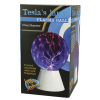 The globe is a sphere that has most of its air replaced with 3 noble (inert) gases – neon, argon and xenon. A high frequency alternating current electrode is in the center, which discharges and excited filaments the strike inside the globe. When you touch the globe, these filaments are attracted to the spot. This globe runs on AC power, and is 15cm diameter.