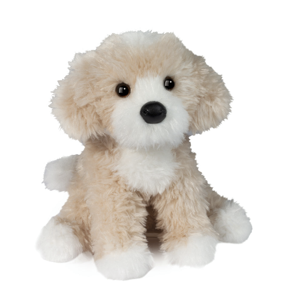 Hold on to your heart because Darcy the Goldendoodle Plush just might run away with it! With her rounded puppy shape and warm, amber colored eyes, it’s easy to fall in love with this snuggly plush pup. And she knows it too! Whenever she’s hoping for a treat or a cuddle, all she has to do is tilt her head a little to the side and gaze longingly at you with that endearing expression and we dare you to resist! Crafted with ultra soft plush materials, Darcy realistically mimics the texture of a real Goldendoodle. Silky polyester fill and beans lend Darcy a floppy, lifelike weight that makes her a delight to cuddle and pose.