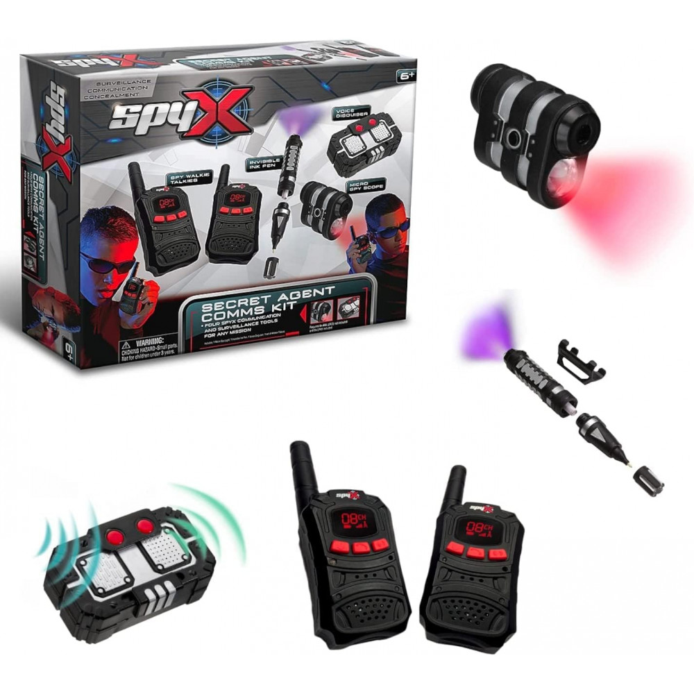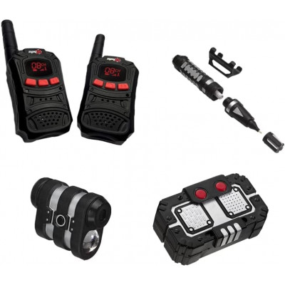 Includes a pair of Spy Walkie Talkie to talk to your fellow agent, a Micro Spy Scope to spy on your target from a distance, an Invisible Ink Pen to write and read invisible messages, and a Secret Voice Disguiser to change your voice, and listen to your 'twisted' message… just right for Jr. Spies!