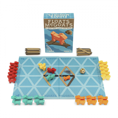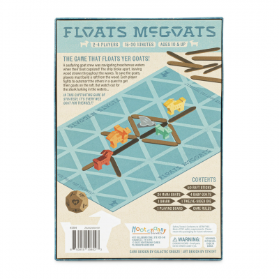 To save the goats, players must build a raft from the wood. Each player fights to outsmart the others in a quest to get their goats on the raft. But watch out for the shark lurking in the waters… In this captivating game of strategy, it’s every wee goat for themself!