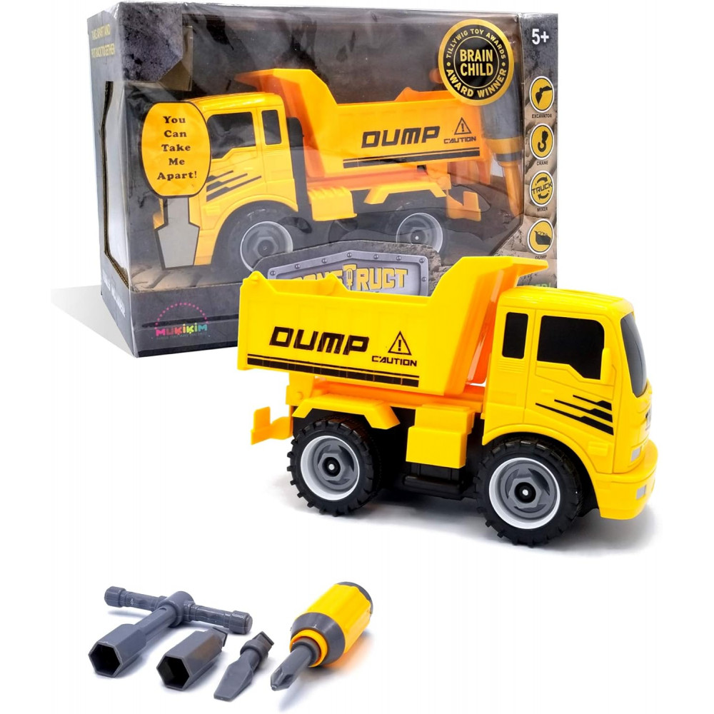 Build your own dump truck! Includes 22 pieces to screw, unscrew, put in place, try in another place, turn, tighten, and build. Included tools help assemble and take apart the truck easier. The truck runs on friction power - just rev it up and let it go - NO batteries required!! Put the wheels and push the car forward and let it run on its own!