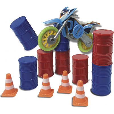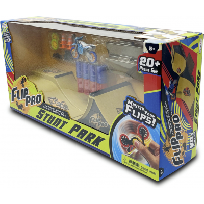 Take playtime to the next level with motorbike stunts, spins, and flips… right in the palm of your kiddo’s hand! The innovative design of Flip Pro Spin Bikes combines finger biking with the addictive spin of a fidget spinner for endless trick possibilities. This pack contains a modular skatepark for the ultimate stunt combos – complete with barrels, cones, and ramps. Includes one Flip Pro Spin Bike and interchangeable wheels to customize it. This screen-free social or solo entertainment hones fine motor skills as kids learn to maneuver a high-quality metal and rubber bike.