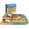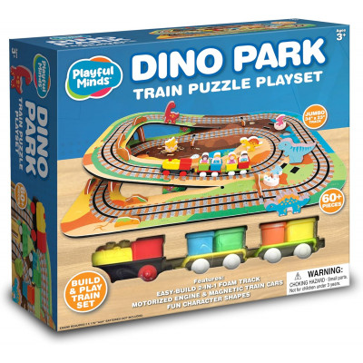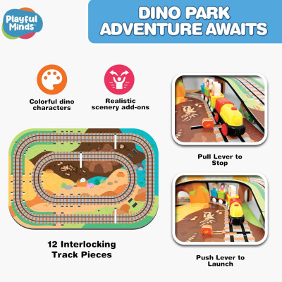 Includes soft, easy-to-assemble EVA puzzle track pieces that create a full train layout – safe and perfect for preschoolers. Comes with 1 engine and 2 train cars that connect magnetically – engine picks up the cars automatically when passing. Create two unique track layouts – simple to snap together and take apart for hours of repeat play. Large 34” x 23” track when fully assembled. Comes with 4 kid figures, dinosaurs, and terrain accessories for imaginative, screen-free play.