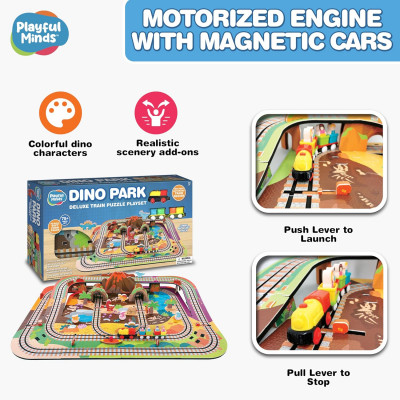 Includes soft, easy-to-assemble EVA puzzle track pieces that create a full train layout – safe and perfect for preschoolers. Comes with 1 engine and 2 train cars that connect magnetically – engine picks up the cars automatically when passing. Create two unique track layouts – simple to snap together and take apart for hours of repeat play. Large 34” x 23” track when fully assembled. Comes with 4 kid figures, dinosaurs, and terrain accessories for imaginative, screen-free play.