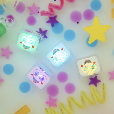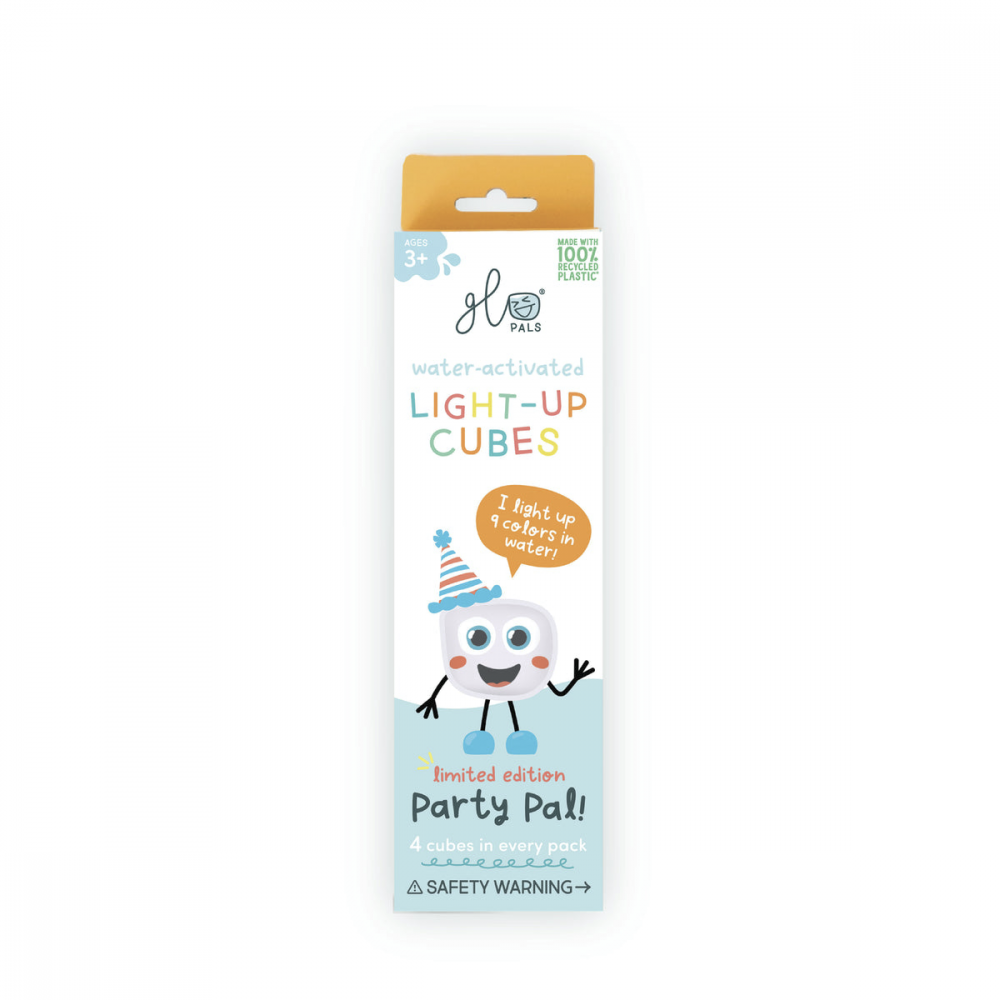 Award-winning Glo Pals Light-Up Cubes are the perfect way to brighten up playtime and our Party Pal Cubes makes it even more colorful. Simply drop your Cubes in water and watch them magically light up! Cubes turn off automatically when removed from water. The pack includes 4 reusable Light-Up Cubes that cycles through 9 colors.