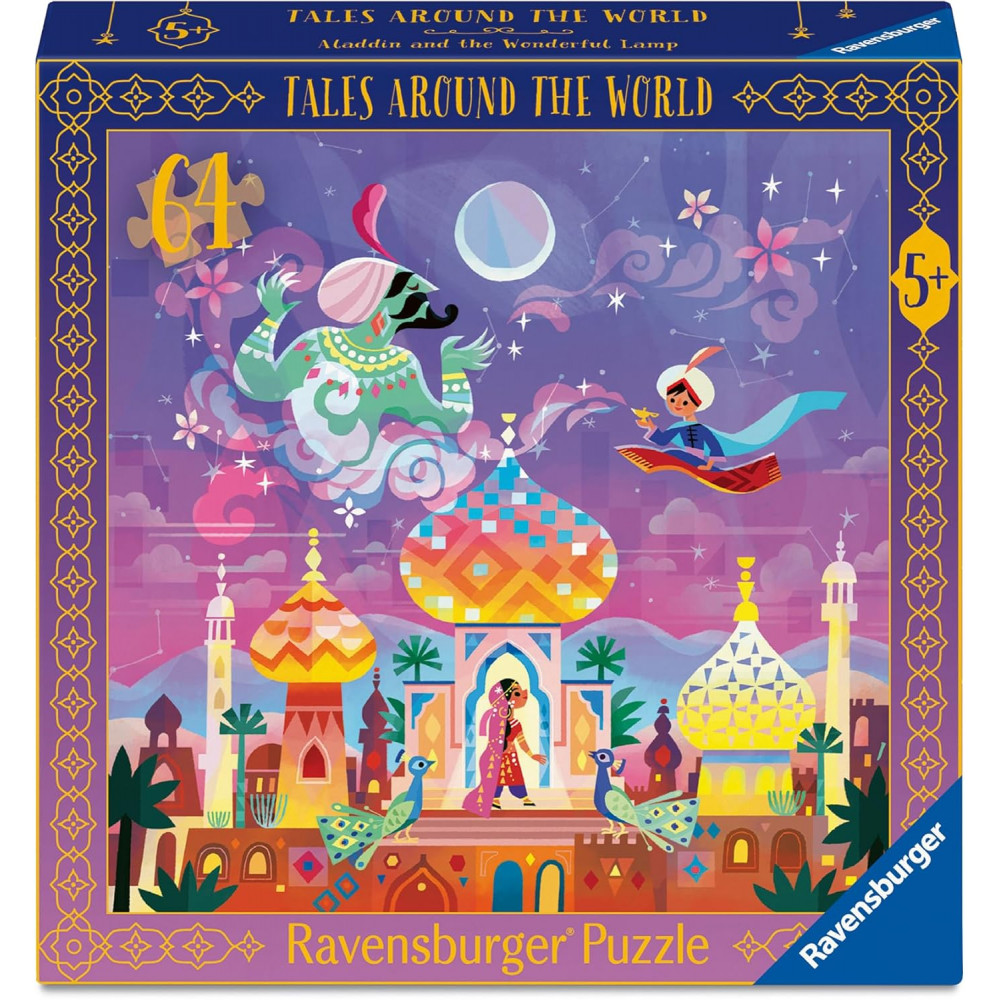 Children can discover tales and stories from all over the world when assembling the jigsaw piece by piece. Discover the story of Aladdin and the Wonderful Lamp and how a poor young man discovers a magic lamp containing a wish-granting genie. Thanks to it, Aladdin becomes rich, conquers the princess and triumphs over the forces of evil.